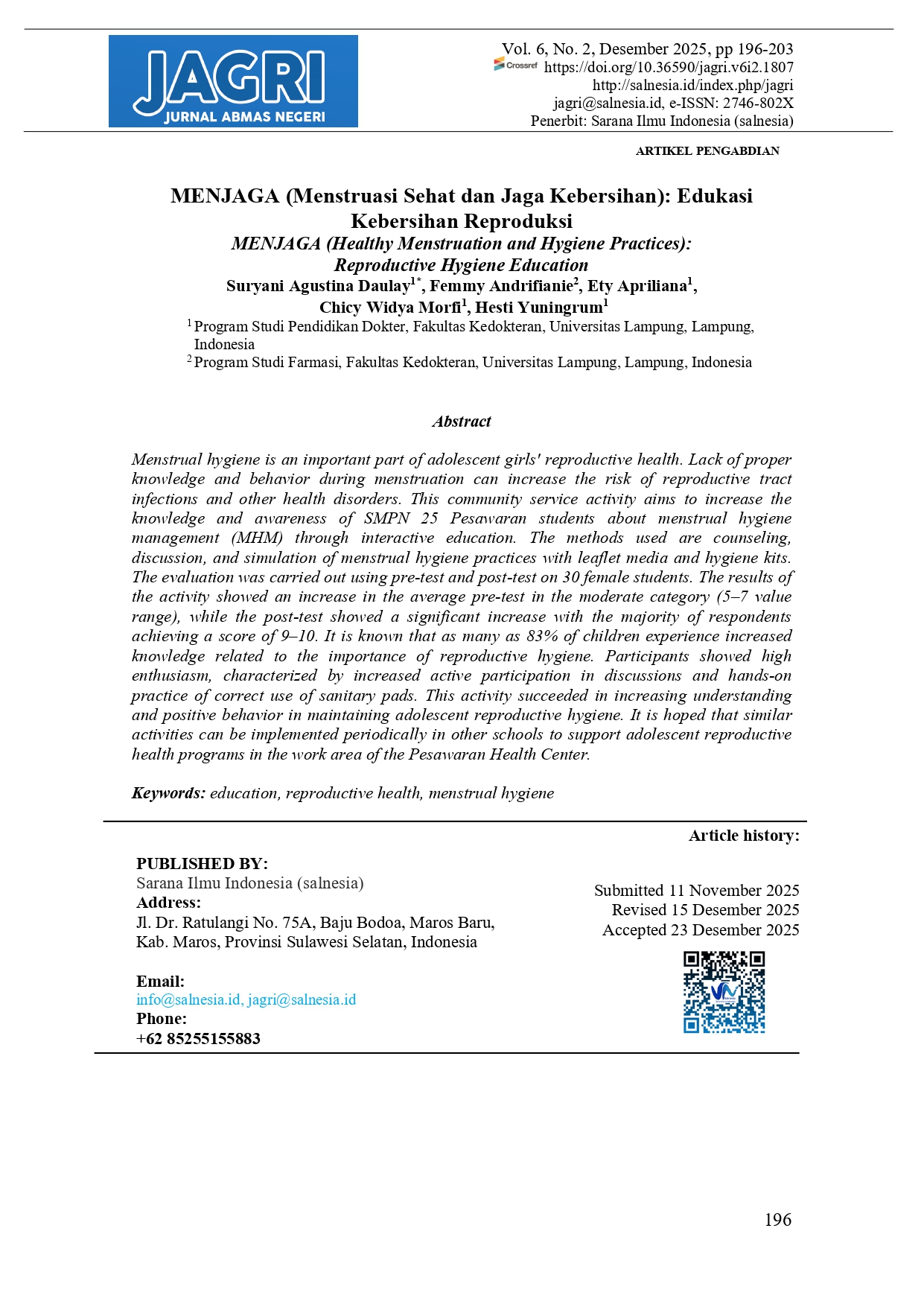 Volume 6 Nomor 2 Desember 2025
